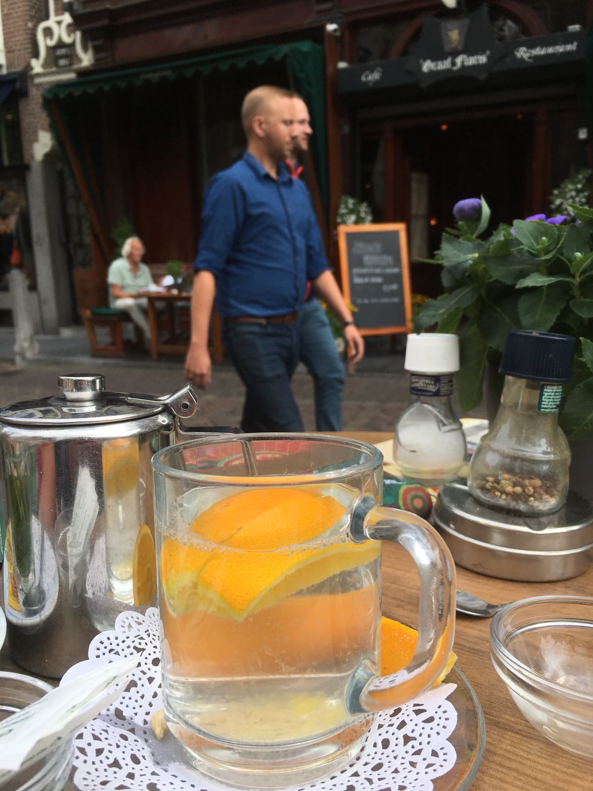 We strijken neer bij Graaf Floris en hebben riant uitzicht op het volk wat voorbij komt lopen. Lekker geluncht, heerlijk gedronken (ze hadden verse sinaasappel thee 😇) maar vooral zalig zitten roddelen over alles wat voorbij komt!