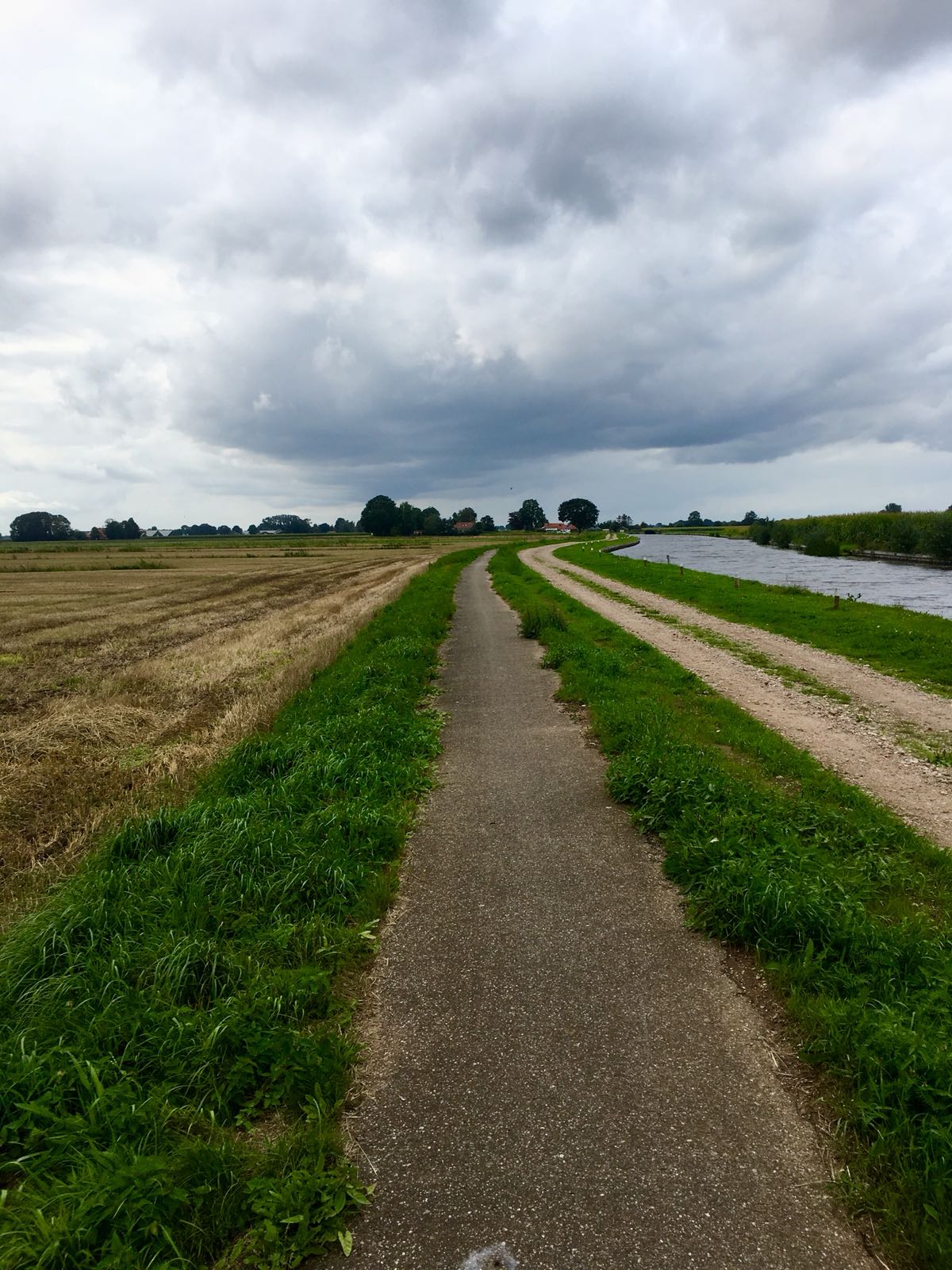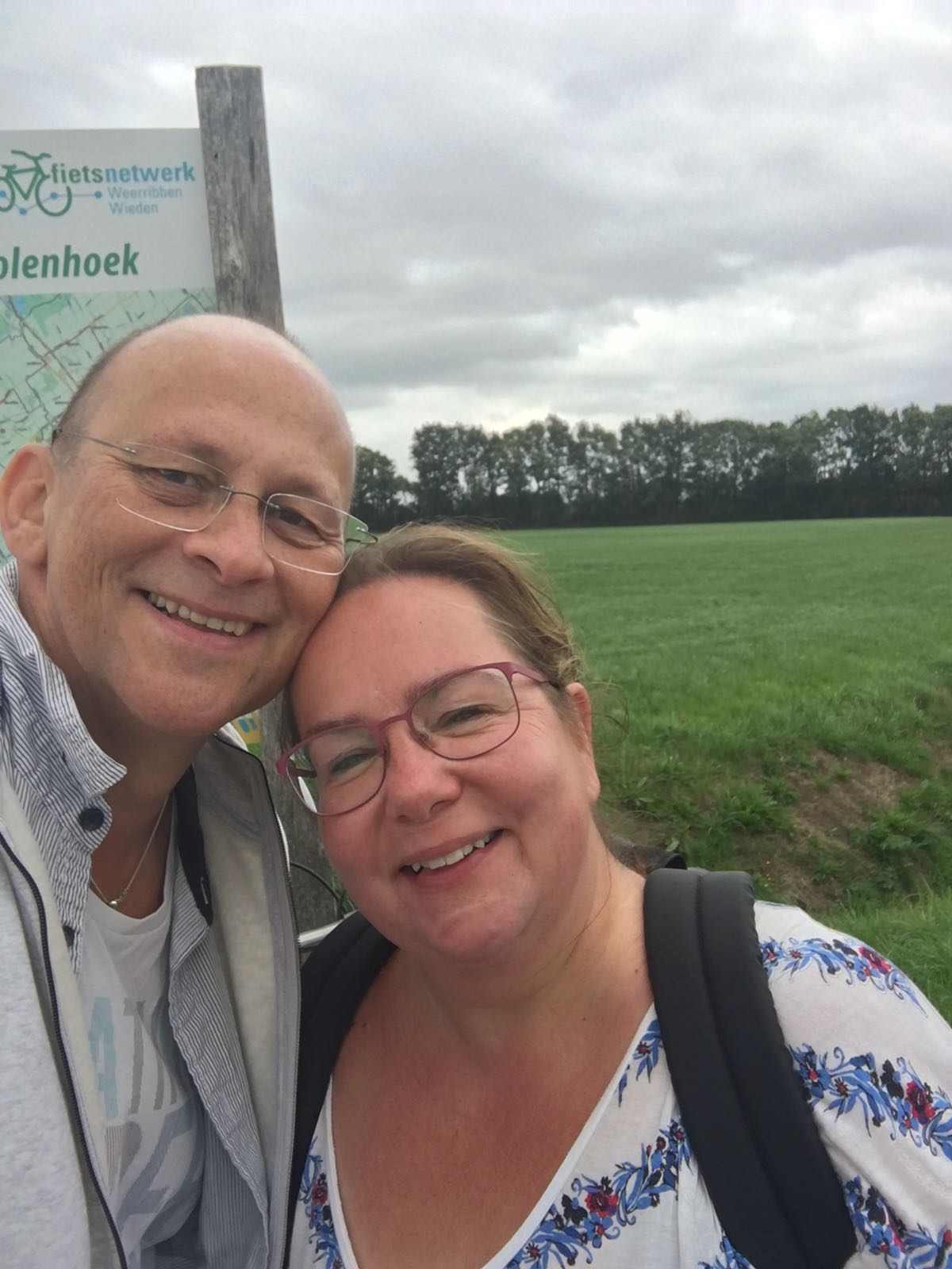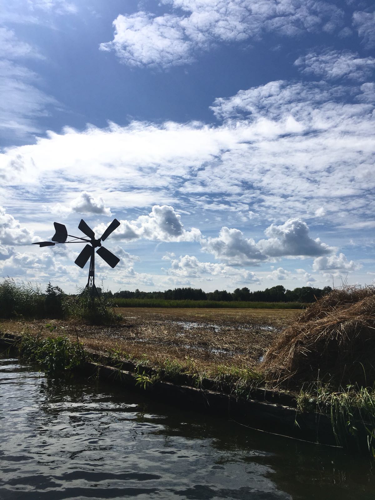 Het gaat regenen, het waait met windkracht vier en uiteraard hebben de wind in de kop! Dat kan allemaal de pret niet drukken. We kopen eerst een vest voor mij en we fietsen 36 kilometer door de Nationaalpark de Weerribben Wieden. Het is een mooi gebied hier en als we wat mooier weer hadden gehad had ik misschien nog wat mooie foto’s gemaakt.