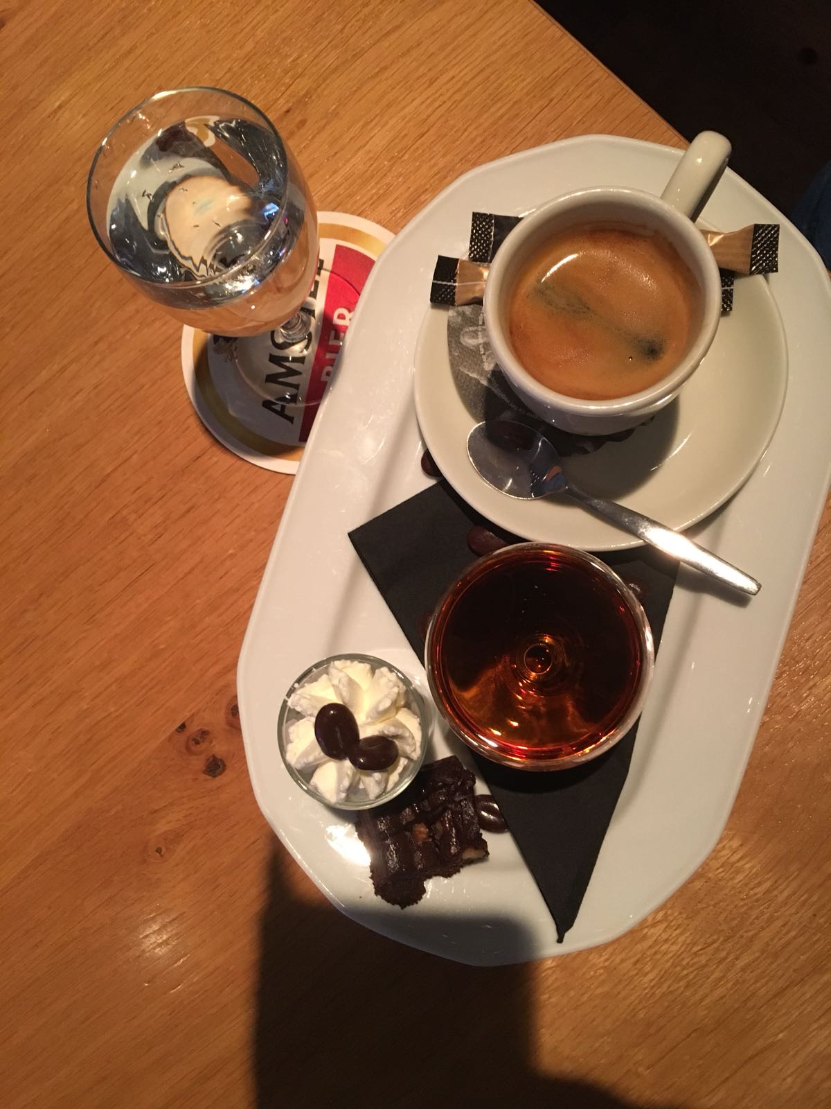 Het vervelende aan een hotel is overigens wel dat je elke avond moet uit eten. Dus vanavond maar weer een leuk restaurantje opgezocht. Tja het blijft afzien hè..We gaan met de fiets naar het dorp en eten bij een leuk bistrootje. We laten ons heerlijk verwennen, zeker met het dessert! Koffie Zus en Zo, koffie naar keuze, likeur naar keuze en een lekkere verrassing. Typisch iets voor ons!