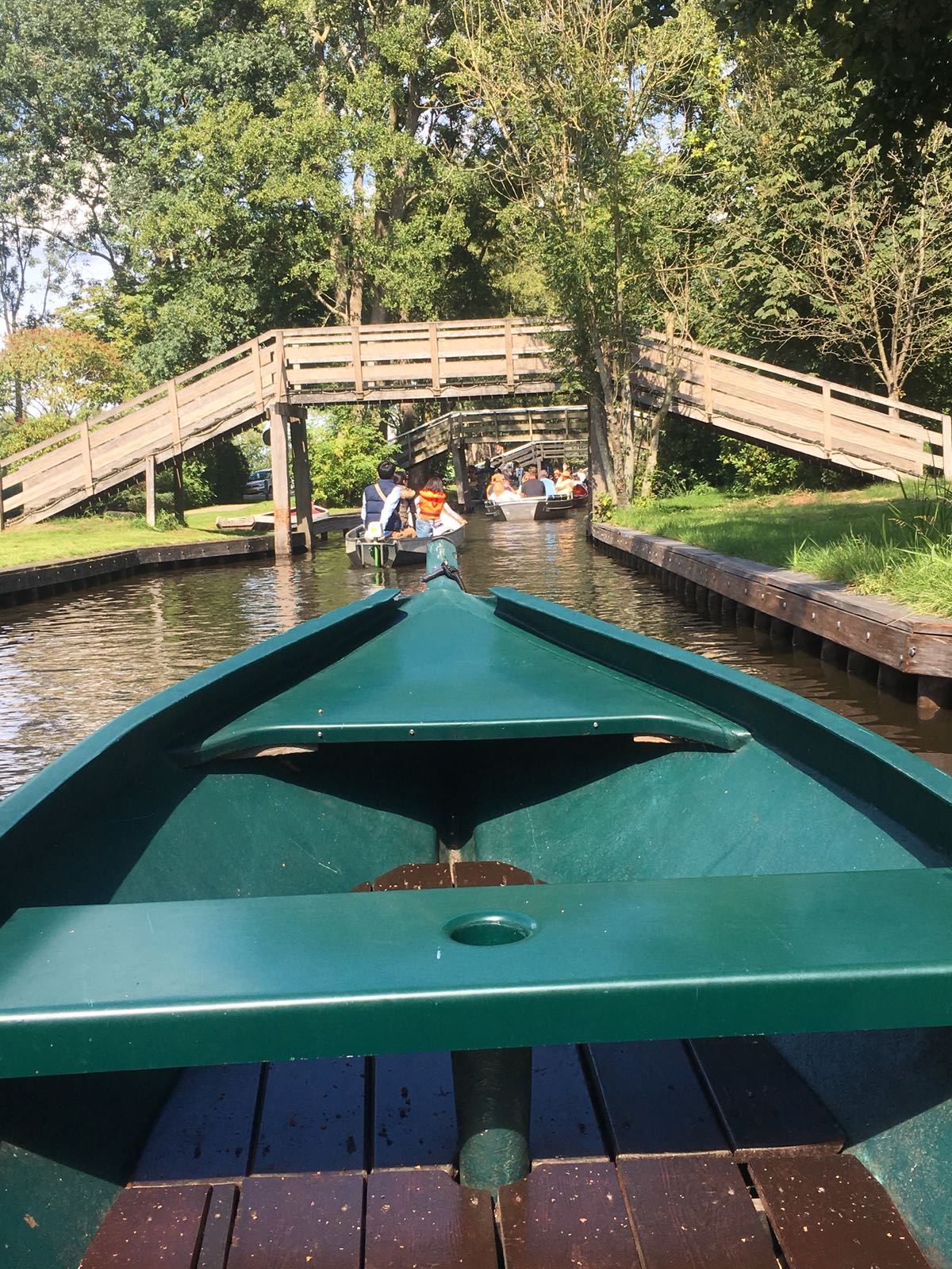 Giethoorn, het Venetië van het Noorden dus. Maar is dat wel zo? Wat is de overeenkomst met het echte Venetië? Er is veel water, dat is een ding wat zeker is. Staan de huizen ook in het water? Nee dat niet. Ze hebben wel vreselijk veel bootjes en eigenlijk geen wegen voor de auto’s dus die rijden er niet. Spreken de mensen Italiaans? Nee dat ook niet alhoewel we heel veel verschillende nationaliteiten hebben gehoord, dat dan weer wel.